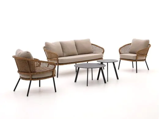 Deze stijlvolle loungeset combineert loungestoelen en een mooie bank, met ruimte voor vier personen. Het warme kleurenschema brengt sfeer op je terras en het hoogwaardige design zorgt voor jarenlang gebruikersplezier .De set bestaat uit: