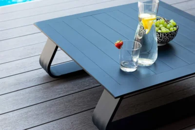 - Polywood Grey Oaklook tafelblad – duurzaam, zonder veel onderhoud .