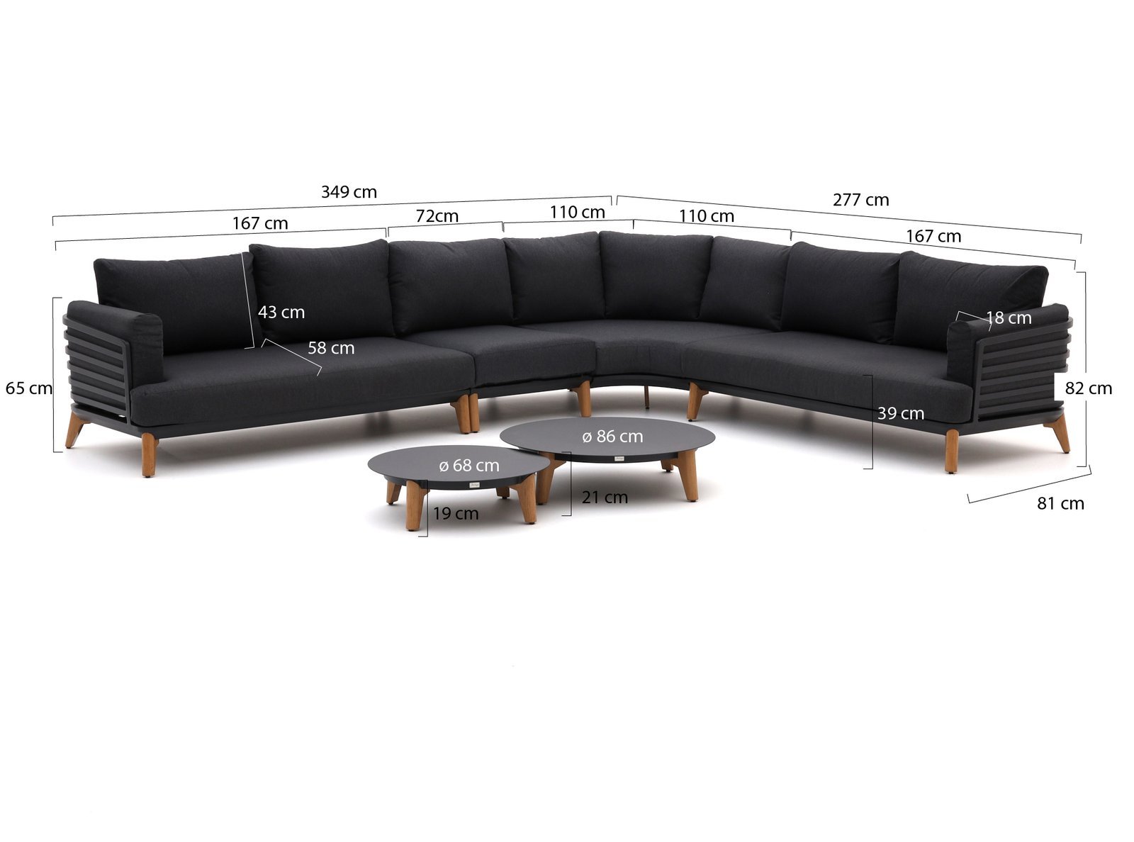 Bellagio Esenta hoek loungeset 6‑delig links – Chique antraciet met zwarte kussens