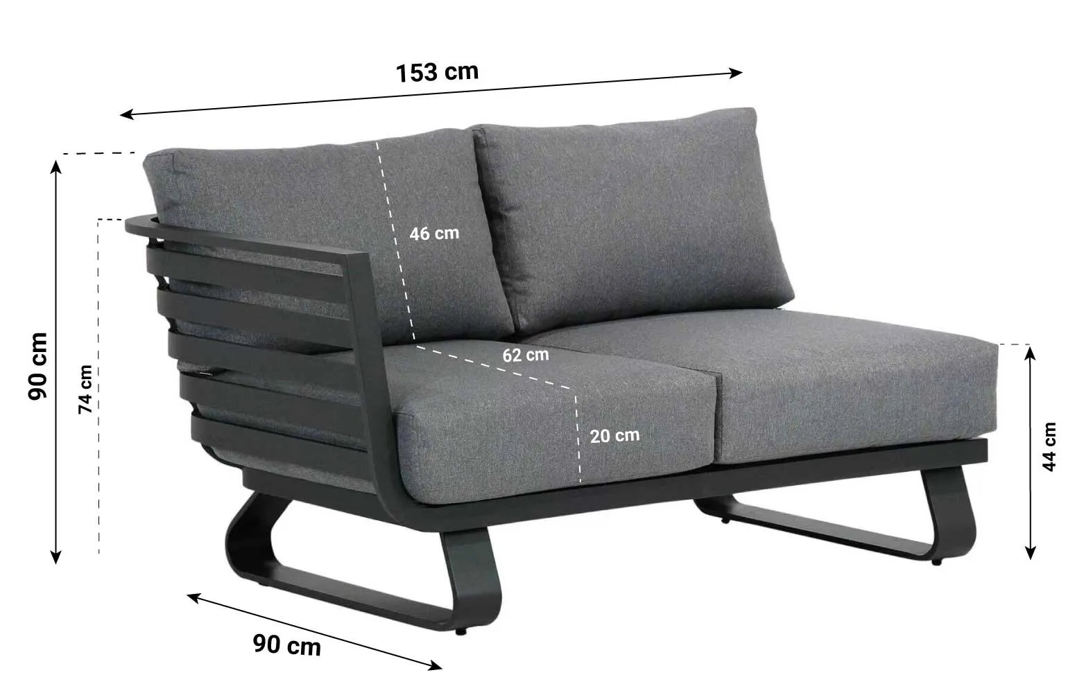 - Hoogte (cm): 74 cm (frame), 90 cm (inclusief kussen)